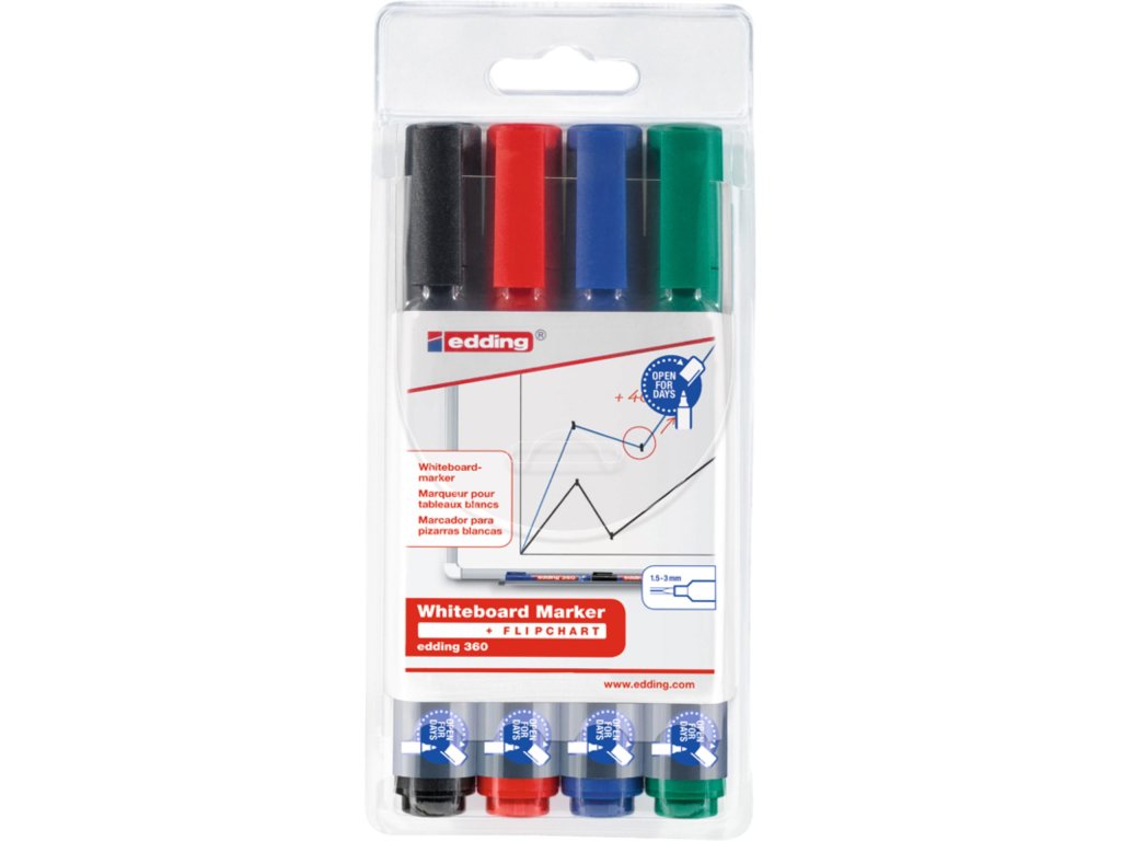 Popisovač na bílé tabule Edding 360 - kulatý hrot, sada 4 barev