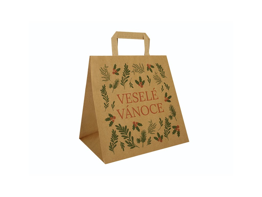 Taška papírová 26+17x26 cm, vánoční potisk - 10 ks