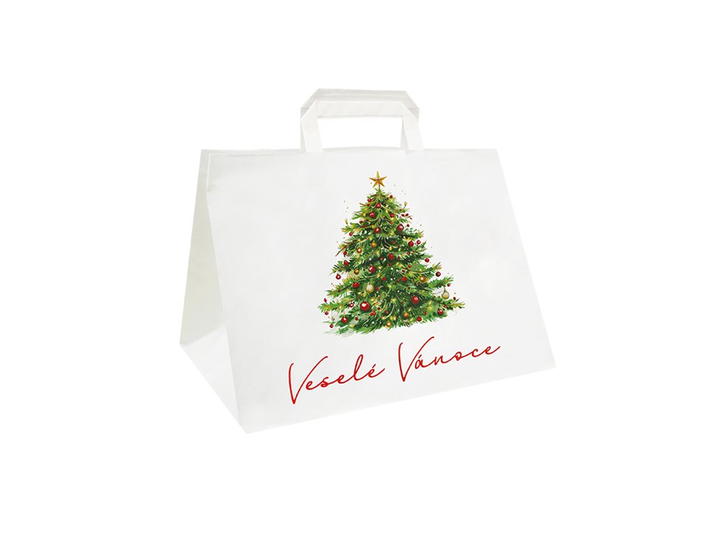 Taška papírová 32+22x24 cm, vánoční strom - 10 ks